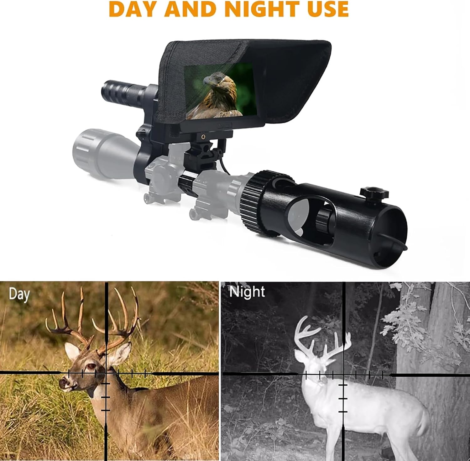 ★ Night Vision Camera System OverviewCamera Specs:Pixel: 3MPSize: 16MMLens: Adjustable focusMode: Switchable day and night modeInterface: Micro USBLCD Monitor:Main Function: Record video and take photosDisplay: 4.3 inch, HD 720PButtons: "On/Off", "OK/Menu", "Up", "Photo", "Video"Languages: English, Spanish, French, Russian, Portuguese, German, Italian, ChineseFlashlight:Type: Laser Infrared flashlightVisible Distance: 200-400 meters or moreBattery Requirements: 2pcs 18650 for display, 1pc 18650 for IR flashlight (Batteries not included)Working Time: Display: 5-8 hours, Flashlight: 4-6 hours★ Package Contents:4.3 inch LCD Display * 1Night Vision Camera * 1Camera Tube * 1Laser IR Flashlight * 1Flashlight Mount * 125mm/30mm Display Ring Mounts * 2Screwdriver * 1Camouflage Tape * 1Monitor Cover * 1