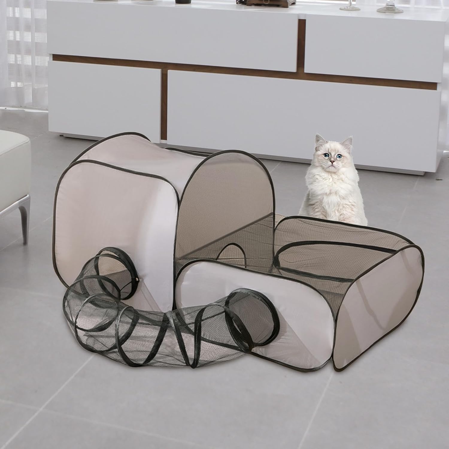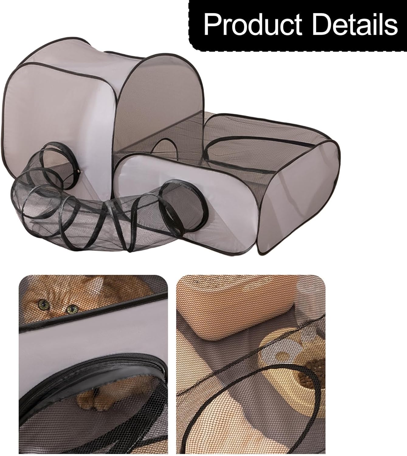 Description: - 【Portable and Space Saving Design】: This cat tunnel features an integration foldable structure, making it easy to store and carry. It's great for outdoor adventures, saving you space while providing comfort for your pets - 【Breathable Mesh for Comfort】: The pet outside play tent and tunnel is surrounded by breathable mesh, ensuring great air circulation and a wide view for your pets, allowing them to see their surroundings clearly - 【Versatile Use for Various Pets】: Ideal as a cozy nest, playpen, or birthing area, this folded cat tunnel is suitable for small dogs, kittens, bunny, and other small animals, offering comfortable environment tailored to their needs - 【Easy to Clean and Maintain】: Made from dirt resistant and scratch resistant materials like polyester fiber net and oxford cloth, the play tent tunnel can be easily detached for cleaning, ensuring a hygienic environment for your pets at all times - 【Sturdy Construction】: The sturdy frame of the pet house provides great pressure resistance without deformation, ensuring stability during use, great for both indoor and outdoor, like balcony or backyardSpecification: - Material: Polyester Fiber Net Oxford ClothSize Chart:100 cmx50 cmx70 cm/39.37 inchx19.69 inchx27.56 inch(Optional)Or160 cmx80 cmx75 cm/62.99 inchx31.50 inchx29.53 inch(Optional)Package Includes:1 Cat Tunnel Note:Please allow slightly errors 1-2cm/0.39-0.79inch differences due to manual measurement.