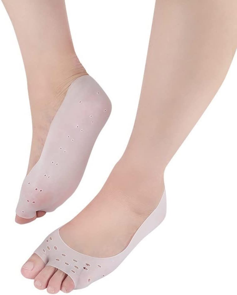 Product name: open-toed boat socks Material : sebs size: one size style: socks Color : White/Skin/Pink Unit: Double Insole function: anti-cracking Insole color: printing Insole category: whole insole Suitable shoe type: all For the season: Summer Applicable gender: unisex / both men and women Applicable age group: adult Product packaging: bag good day wish you a happy life