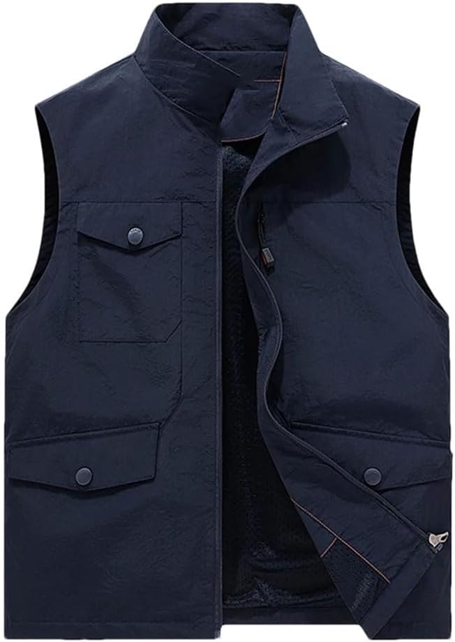 Material:POLYESTERApplicable Season:Spring And SummerApplicable Scene:CASUALDecoration:PocketsClosure Type:ZipperType:RegularDetachable Part:NonePattern Type:SolidClosure Type:ZipperClothing Length:RegularHooded:NoCollar:Crew NeckStyle:CasualItem Type:Outerwear & CoatsOuterwear Type:VestGender:MEN