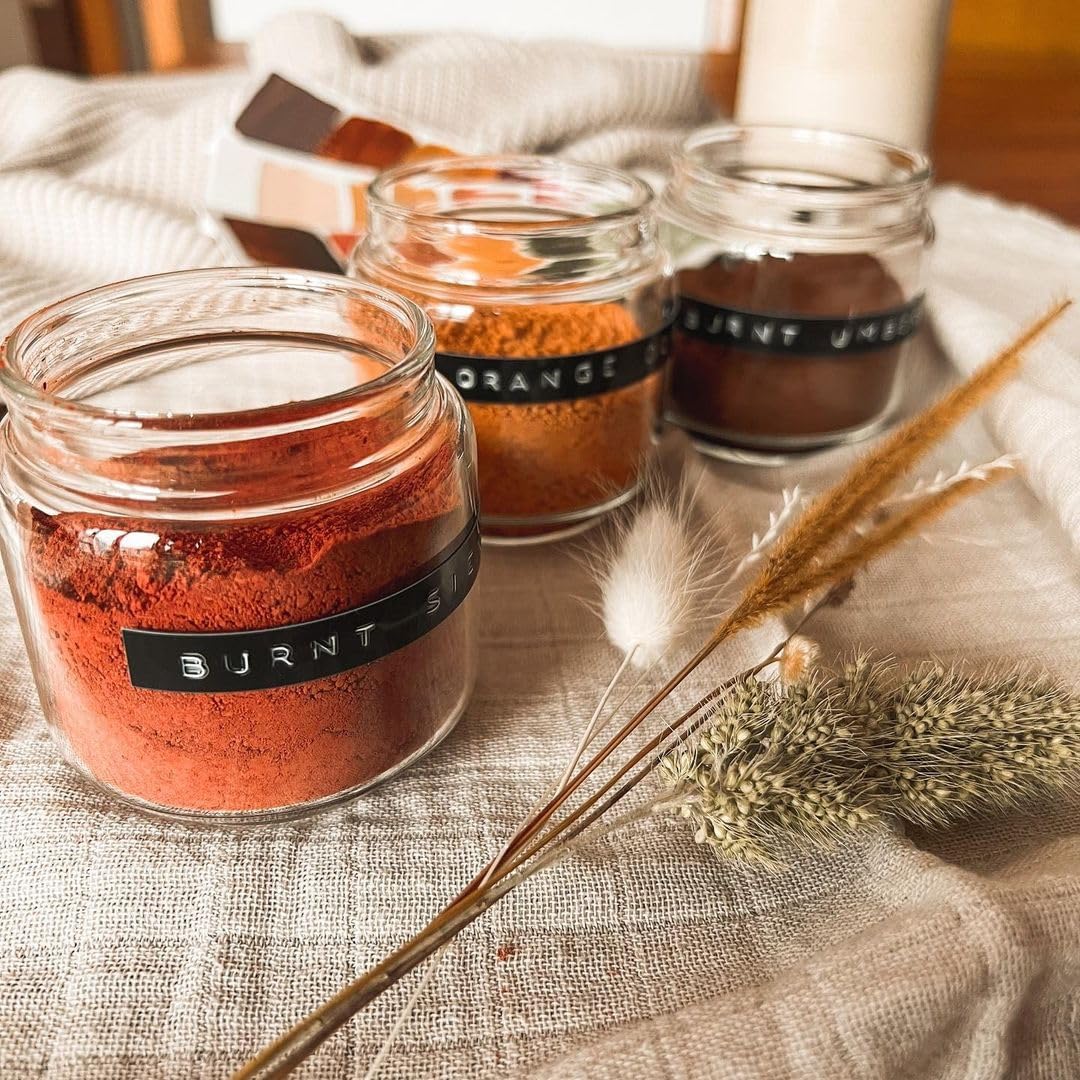 Natural Earth & Mineral Pigments are beautifully archival, eco-friendly, and sustainably-harvested from around the world. They contain no added fillers, additives, preservatives, or stabilizers. Each box contains all 20 of our earth & mineral pigments (2 tsp per color). Each natural pigment has a different set of characteristics, such as liquid absorption, volume, tinting strength, and granulation. Because of these characteristics, they each require a different volume of binder to create the desired paint consistency.