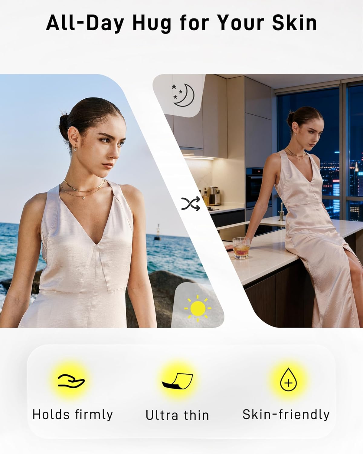 • Adhesive & non-adhesive silicone Pasties set: Our classic round nipple covers fit smoothly against breast contours, delivering an invisible finish. The adhesive nipple covers provide residue-free and secure adhesion, suitable for strapless and backless styling. The non-adhesive pasties utilize body heat to enhance grip; warm them in your palms for 10–15 seconds before use, ideal for daily wear, light exercise, and adhesive-sensitive skin. A single set meets all your needs.