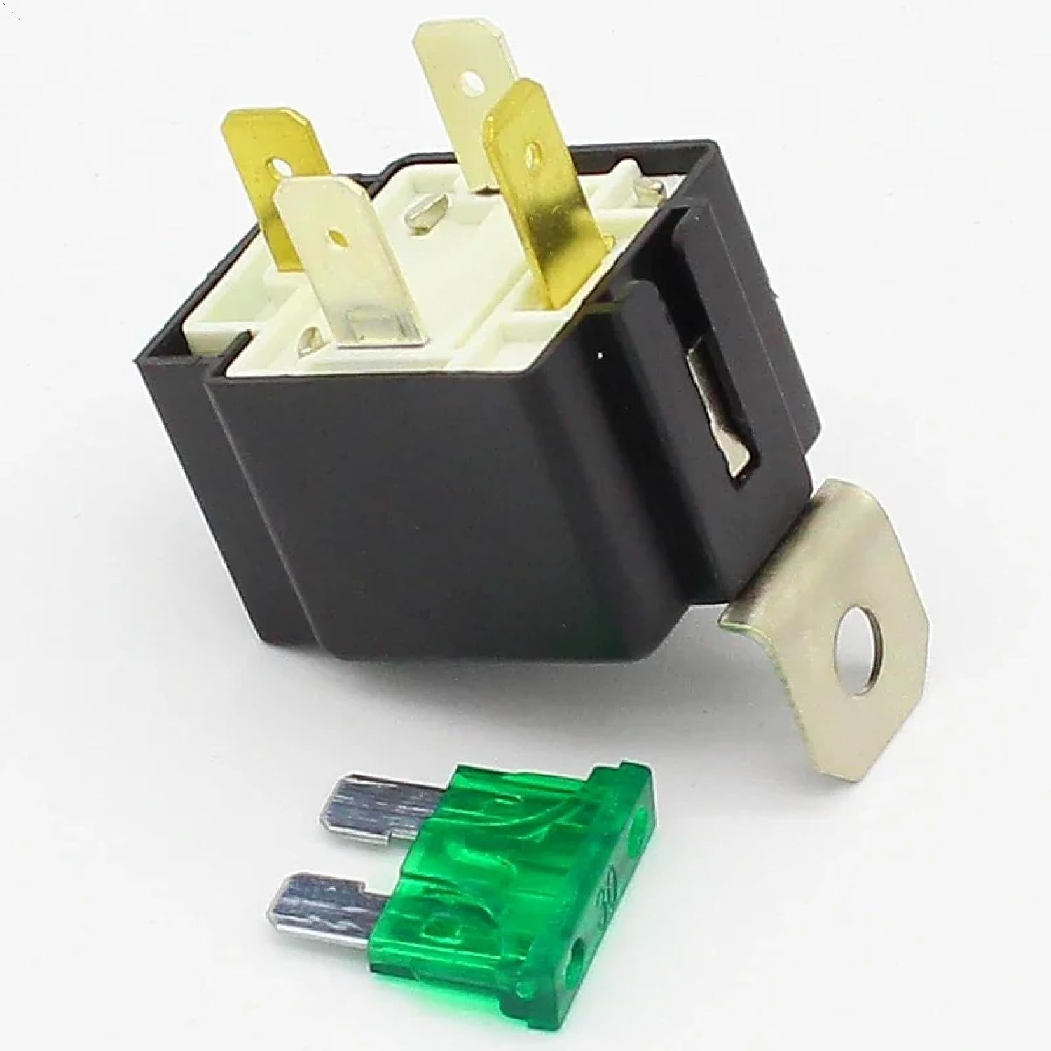 This NVFSA30DC12 automotive relay is a robust 4-pin electromagnetic switching device designed for demanding vehicle applications. Rated for 30 amps at 12V DC, it features an integrated fuse for enhanced circuit protection. The relay's sealed construction shields internal components from moisture, dust, and other environmental factors commonly encountered in automotive settings. Its compact design incorporates a universal 12-volt DC coil voltage, making it compatible with standard vehicle electrical systems. The relay efficiently handles low power contact loads while maintaining reliable switching performance. The 4-pin configuration allows for straightforward installation and replacement in various automotive circuits. This relay is particularly suited for controlling high-current vehicle systems like lighting, fans, or other power-hungry accessories. Each unit comes with mounting hardware and includes green indicator fuses for easy status monitoring. The relay's durable construction and practical design make it an ideal choice for both OEM replacement and custom automotive electrical projects.