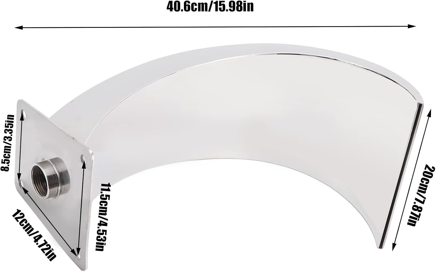 Specification: Item Type: Pool Waterfall FaucetMaterial: 304 Stainless SteelWeight: 2900g/6.39lbColor: As Shown Size: Height: Approx. 40.6cm/15.98inWidth: Approx. 20cm/7.87in Screw Mounting Hole Spacing: Approx. 12x8.5x11.5cm/4.72x3.35x4.53inScrew Hole Size: Approx. 10mm/0.39inOutlet Size: Approx. 19.8x0.4cm/7.80x0.16inThread: G1 Internal ThreadApplication: For Swimming Pool Fountain, Swimming Pool, Landscape Garden, Playground Package List: 1 x Pool Waterfall Faucet Note: 1. Only arc design pool waterfall faucet is delivered, and the screw accessories for installation need to be purchased by the customer;2. Connect water pump for use (no water pump for shipment).