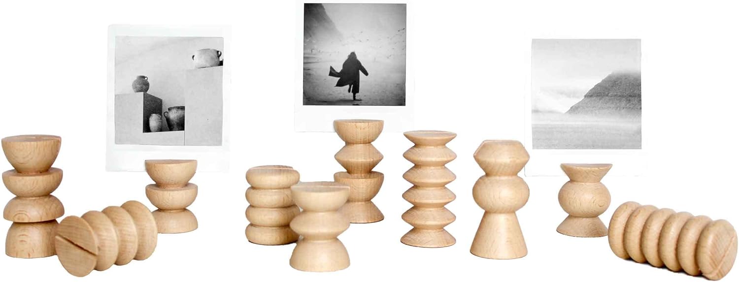Give your most special memories a unique place with these wooden picture / postcard stands. Inspired by the native American Totem Pole, translated into an eye-catching piece to decorate your home. The wooden picture / postcard stands are both practical and decorative at the same time. They can fit your favourite instant pictures and can also hold a postcard up to maximum EUR A6 / US letter size. Alternatively you can use the wooden stand to hold a wedding place name card. Each size has 5 different design, the whole family of wooden totem pole inspired picture / postcard stand give you many options to display your pictures and postcards in a playful way.