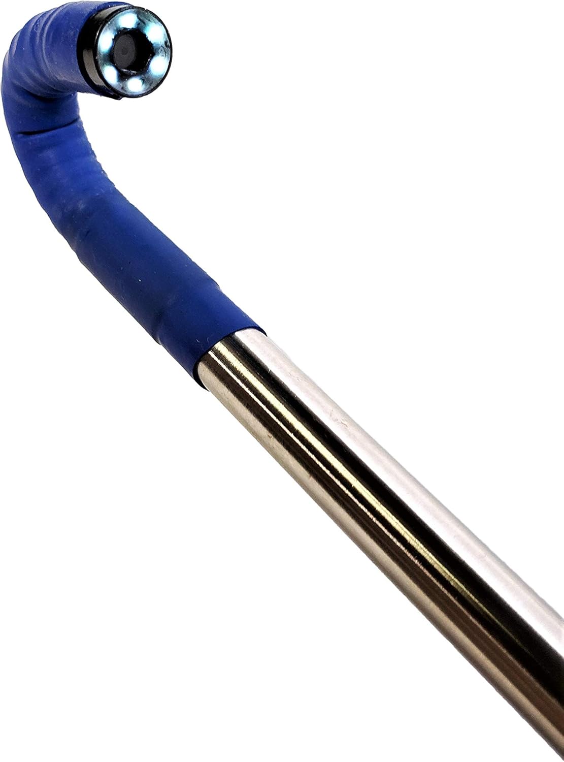 Vividia VA-408 USB Rigid One-Way Articulating Borescope Videoscope Inspection Camera is a long version of VA-400 USB one-way articulating rigid straight borescope. The probe tube of VA-400 is 400mm (15.8"), while VA-408 has 800mm (31.5") long probe tube. Features: 180 degree one-way articulation 8.5mm diameter probe 31.5" long rigid 8mm diameter straight stainless steel probe tube USB output to Windows, MacOS, Android devices 6 bright dimmable LED lights High resolution 1280x720 With a wifi conversion box (like W01, W02, W03 or IMB-07), VA-408 can be connected to iPhone iOS tablets Android wirelessly Compatible with M450 USB LCD monitor Tech Specs: Output: USB2.0 Probe camera diameter: 8mm Camera resolution: 1280x720 Focus range: 20mm to 150mm Probe tube length: 800mm (31.5") LED lights: 6 LED lights Articulation of the probe: one-way, max. 180 degree Connection to: Windows 10/8/7/XP, MacOS, Android USB cable length: 2 meter (6 ft) Optional accessories: wifi box to iOS device and Android; USB monitor