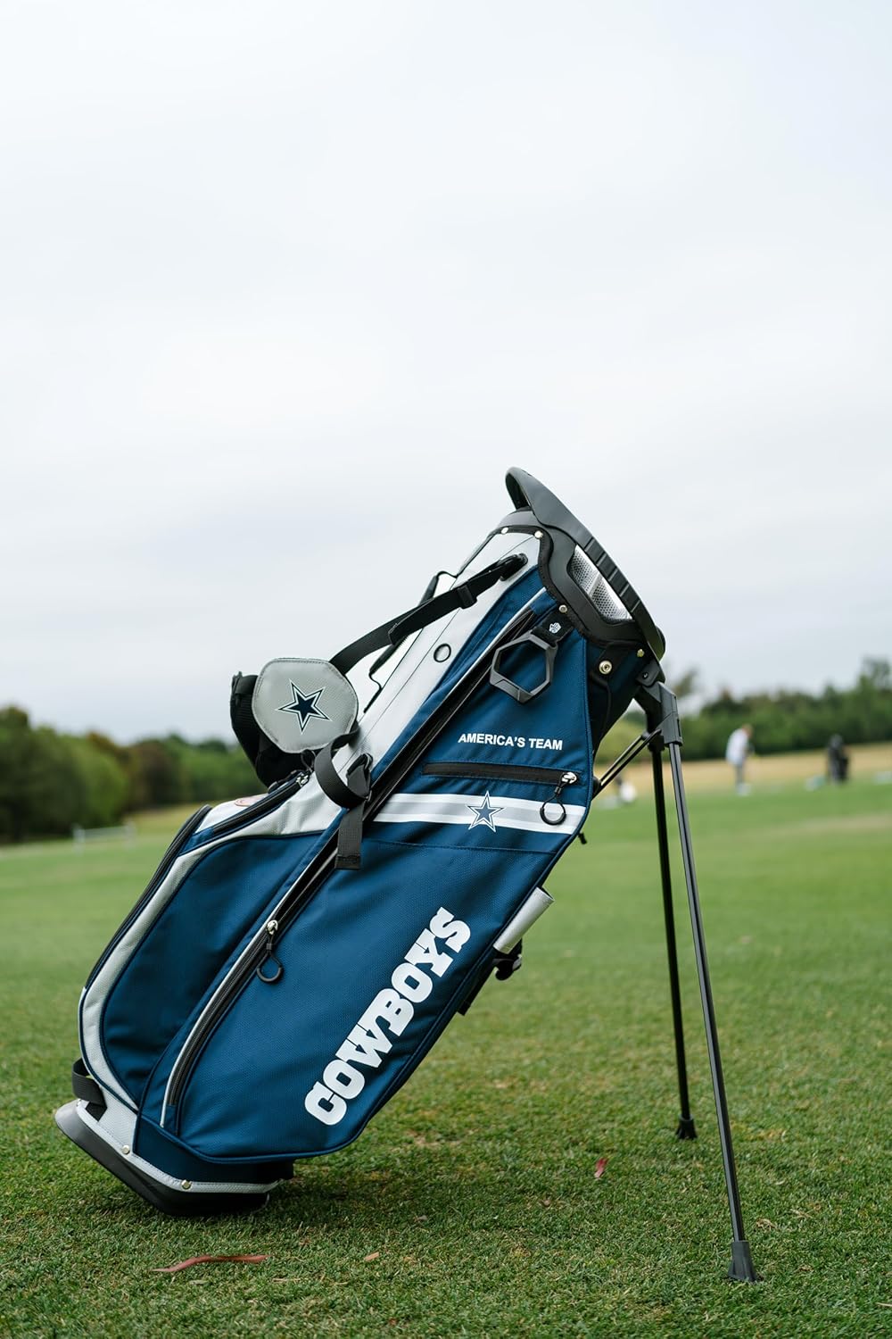 Tee off with your team. Choose from all 32 NFL teams and bring the fandom (and rivalry) to the fairway. As the provider of the official game ball of the NFL since 1941, Wilson premieres its authentic NFL Stand Bag which is obsessively engineered to perform at its best. Lightweight sturdy construction featuring player-appreciated details like beverage pocket and magnetic closure GPS pocket, the NFL Stand Bag’s ergonomic double shoulder straps and a quick-activation legs make it easy to stand and use, while premium NFL logos and approved colors show everyone which team has your allegiance.