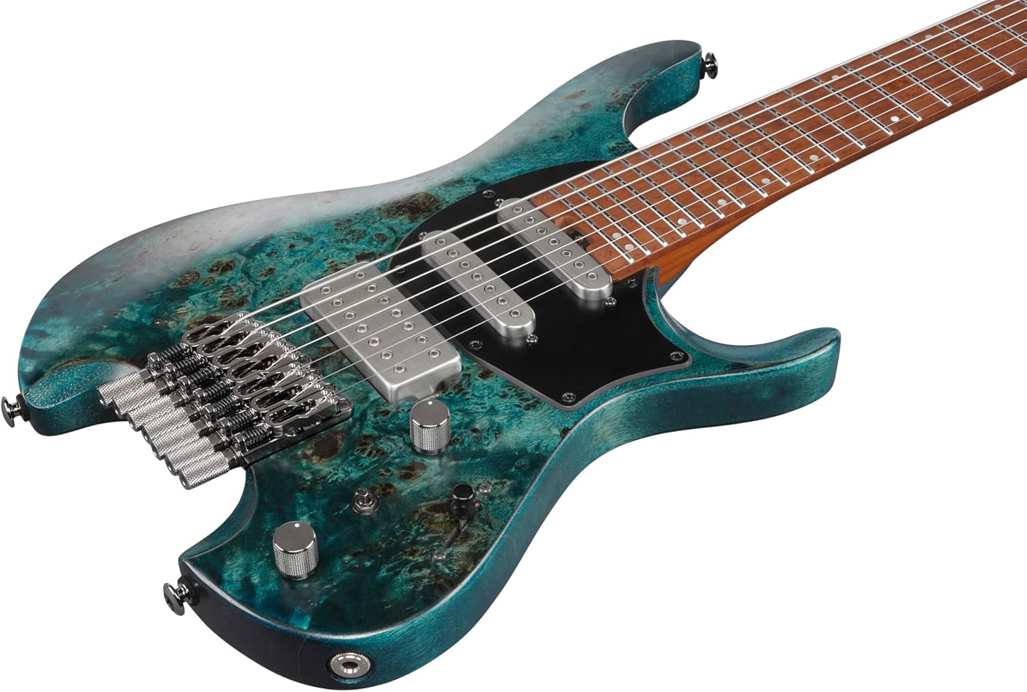 A Boundary-shattering 7-string Headless Axe Part of Ibanez’s boundary-pushing Quest series, the Q547PB 7-string electric guitar vaunts a headless design built from the ground up to maximize tone, performance, and playing comfort. While this solidbody electric guitar is extremely lightweight, its ergonomic nyatoh body, which is capped by a head-turning poplar burl top, resonates with rich, woody tones that belie its compact profile. Technically minded players will be blown away by the zero-drag feel of the Q547PB’s Wizard “C” neck, and its heat-treated bird’s-eye maple fingerboard is as playable as it is visually appealing. This headless guitar’s made-to-measure pickups exude amazing levels of articulation and definition, and their flexible HSS configuration is further bolstered by Ibanez’s acclaimed dyna-MIX9 switching system. Rock-solid hardware, including a custom string lock and innovative Mono Tune bridge, ensures easy string changes and ultra-reliable, stage-worthy performance. Stainless steel frets round out the Q547PB’s generous features. If