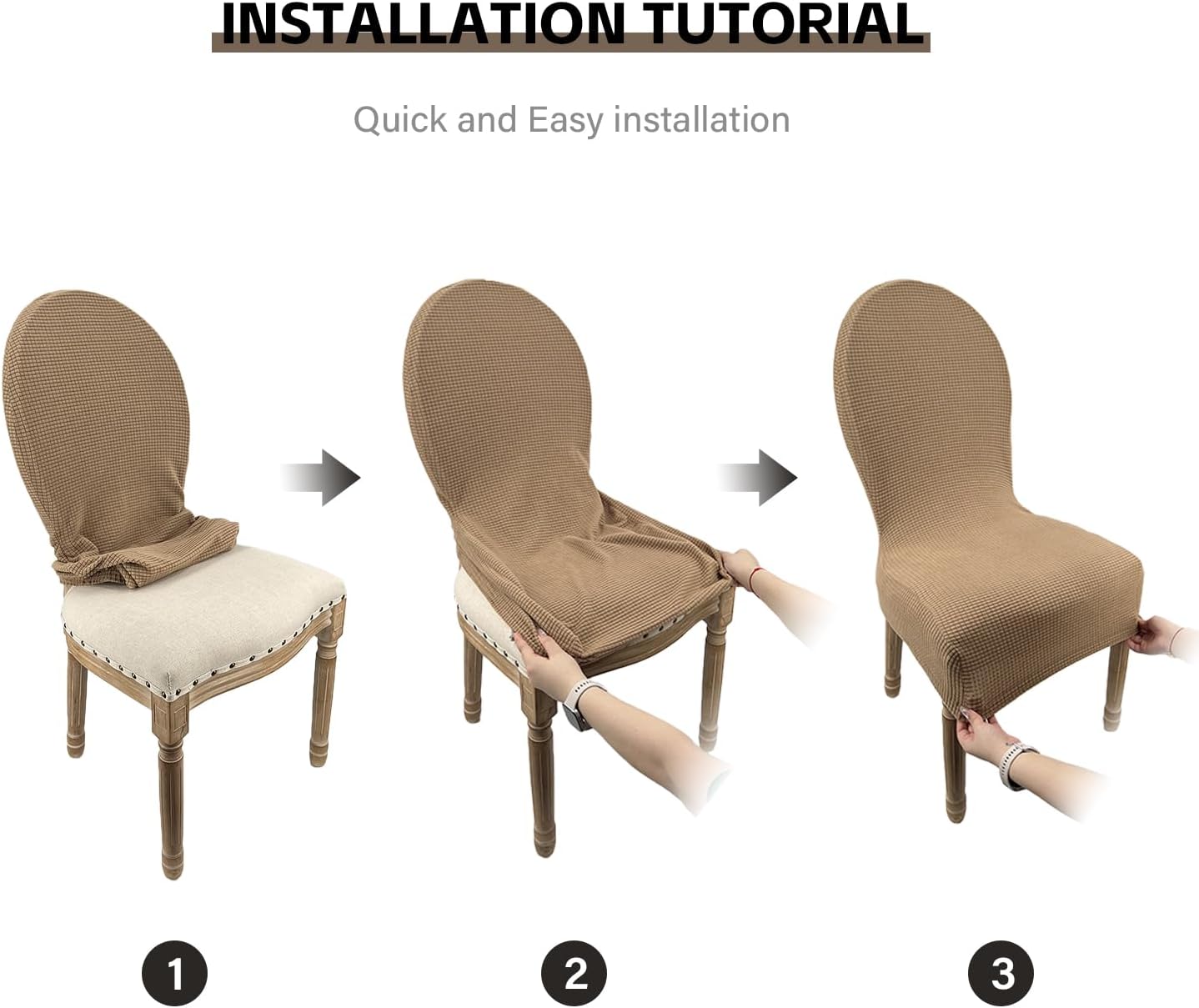 Product Description.We A Brand That Produces A Range Of Lifestyle Products Such As Home Textiles And Patio Decorations With Creativity And Style. Our Company'S Philosophy Is To Serve Every Customer. Your Satisfaction Is Our Greatest Motivation!Add Elegance And Modernity To Your Living Room, Dining Room, Kitchen, Office Or Balcony And Make A Lasting Impression.✔Features:Simple And Stylish Chair Covers Made Of High Elastic Fabric, Scratch Resistant, Wear Resistant, Durable, Can Be Used All Year Round, Soft And Comfortable, No Wrinkles, No Pilling, Washable And Machine Washable, Perfect For Families With Pets And Children✔Color: Beige, Light Gray, Purple, Khaki, Yellow, Dark Green, Dark Gray✔Material: 92% Polyester And 8% Spandex✔Qty: 2pcs/4pcs✔Size:Seat Surface Width: 46-51cmSeat Surface Depth: 40-45cmSeat Back Width: 40-45cmSeat Back Height: 45-50 Cm✔ Packing List:Chair CoverPacking Box✔Please Note1. Please Check The Size Chart And Measure Your Chair Accurately.2.Please Allow 1-2 Cm Slight Deviation Of Measurement Data.3.Due To Different Light And Screen Settings, The Color Of The Item May Be Slightly Different From The Picture.✔ After-Sales Service: If You Have Any Questions/Issues/Suggestions About The Product Or Our Service, Please Contact Us.