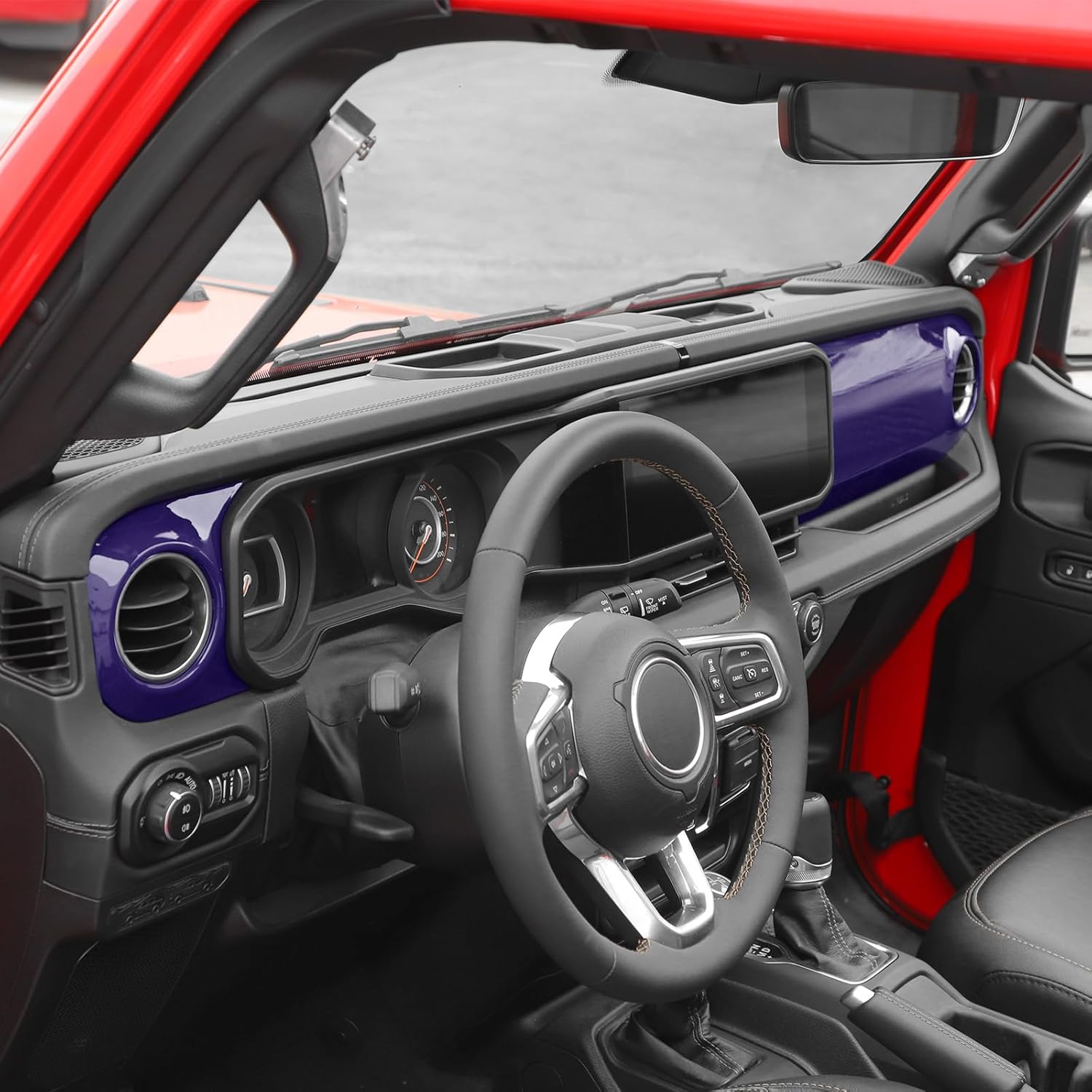 Model: for Jeep Wrangler JL JT 4XE 2024+(New Model Interior). Feature: -Completely changed the Original Colors, it slip over the factory plastic and fits perfect. Provides a high class and fashion decor style for your car.change the ordinary design and add unique color. It can cover existing scratches and prevent your car from scratch and abrasion. -Made of High Quality ABS -Can be installed directly, no drilling or cutting required, just stick the trim on the Original parts. Don't need any other tool, no damage to your Car After sales service -If you're not 100% satisfied with Voodonala Center Dash Panel Cover simply return it on amz rules. -If you have any suggestions or questions for our products, please contact us as soon as possible. Package Include: 2Pcs Voodonala Center Dash Panel Cover. Attention: Please compare your original Car with our images before placing the order. for Jeep Wrangler JL JT 4XE 2024+(New Model Interior).